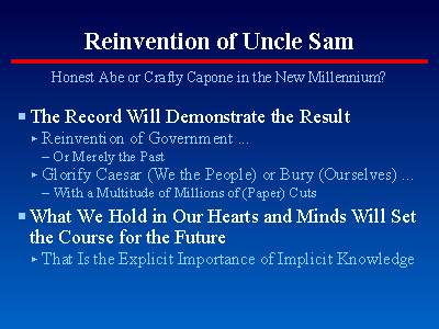 As the saying goes, if we keep doing what we've always done, we'll keep getting the result we've always gotten. Not only do we hold it in our power to do better than that, but the realities of the cyberage dictate that we must.